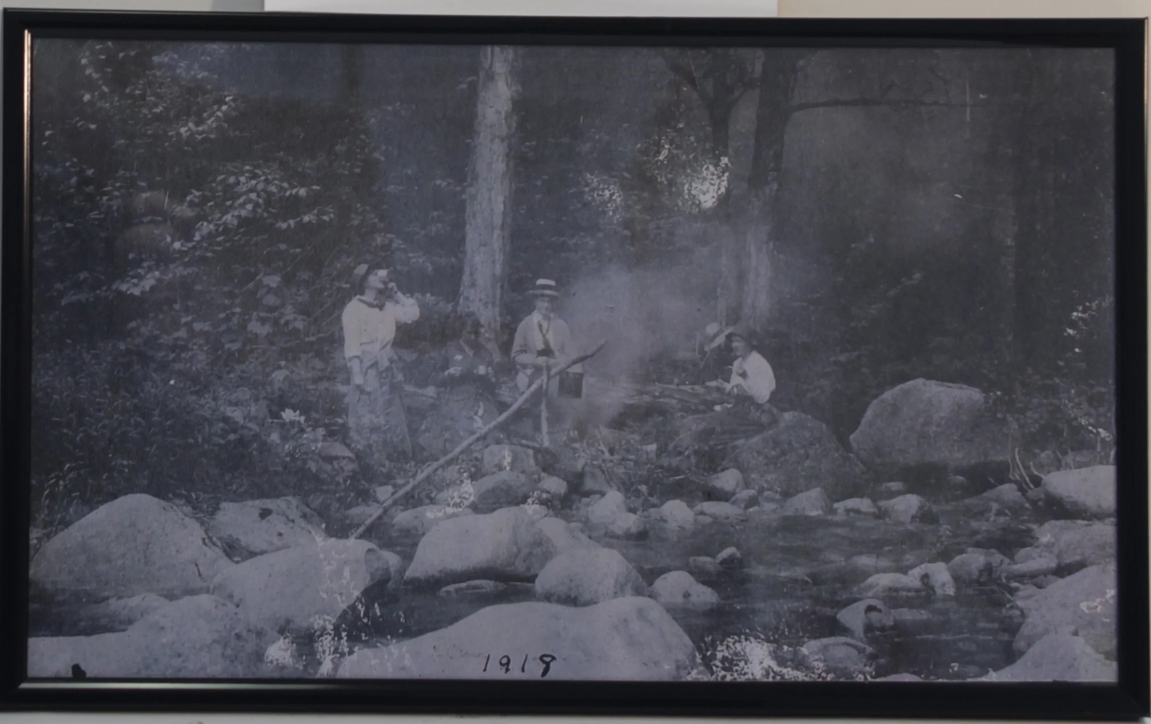1918, Four hikers cooking over fire, donated by Jerauld Adams