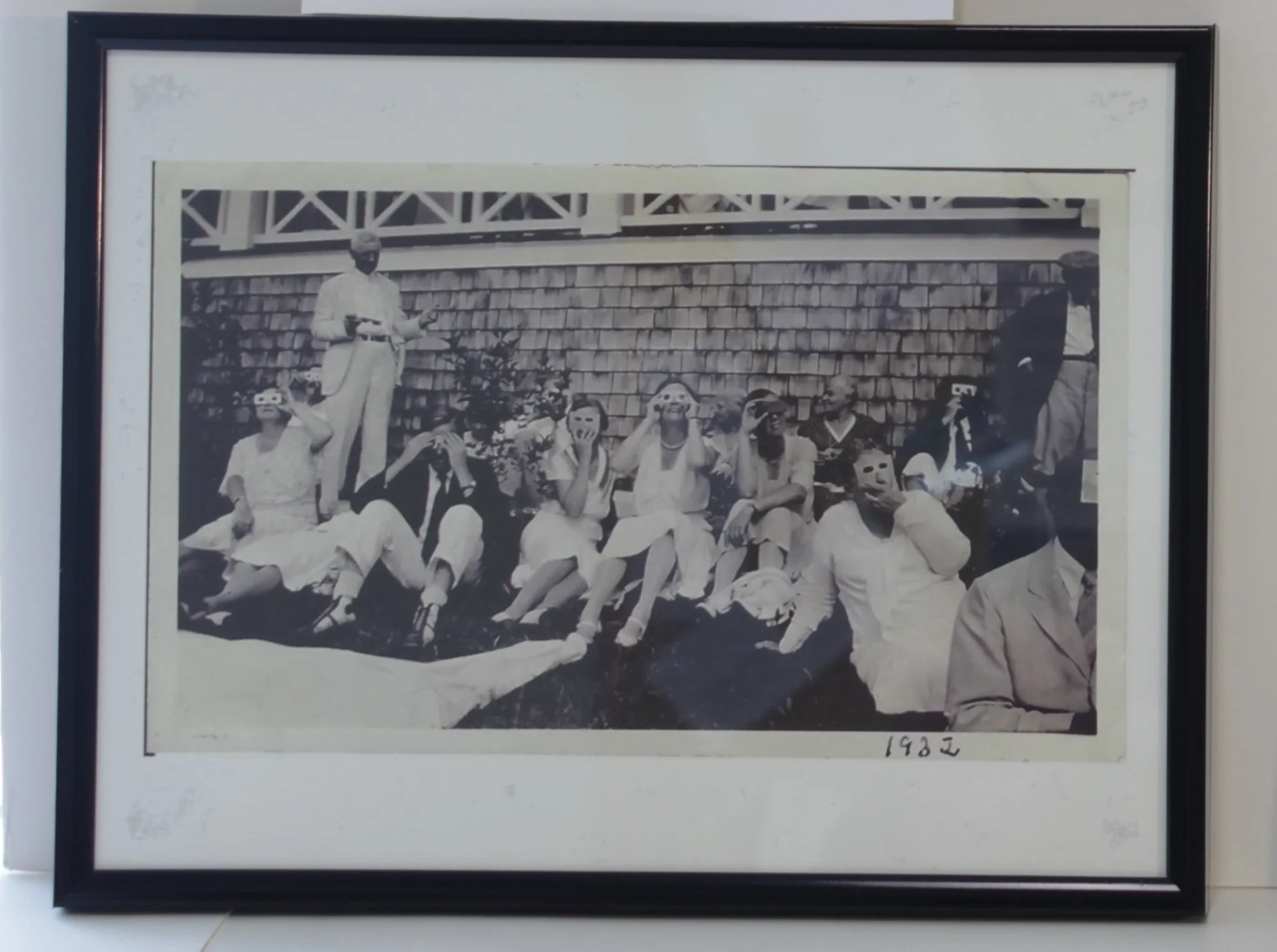 Framed photo, August 31, 1932 Solar Eclipse Party at the Fabyan Cottage, donated by Jerauld Adams